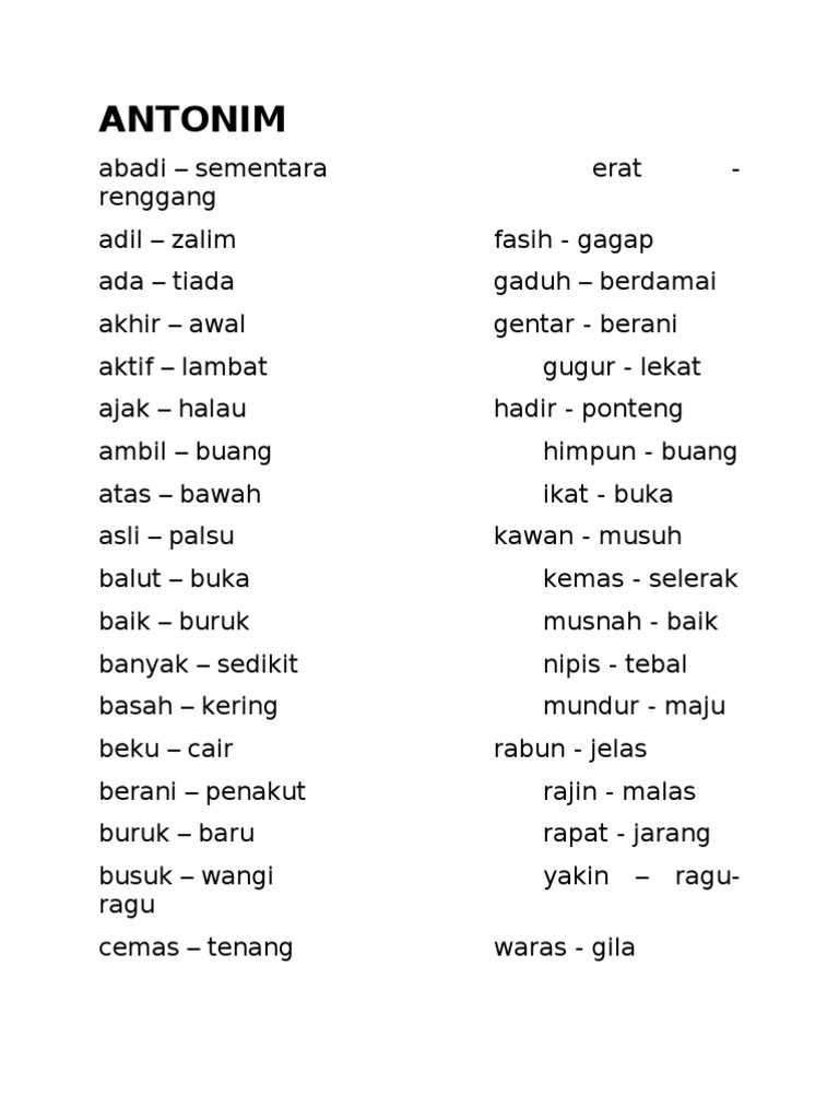 Daftar Lengkap Contoh Antonim Lawan Kata Sinonim Persamaan Kata Nurainins Blog
